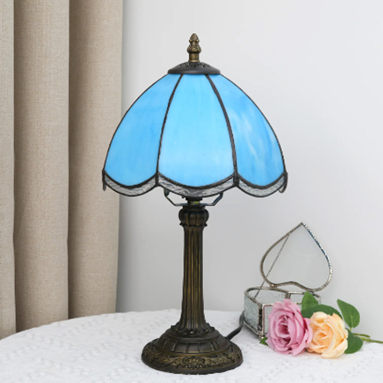 VIII Inch Sky BlueVintage vitreo Petal Pluteum Lamps. Eleganter Tabella vitrea Lampas vitream aliquam vibrans umbram caeruleam cum durabili resina Base. Perfect for Adding a Classic touch to any room. Mensurae 36.5 cm in Height, Cum 155 cm Filum Longitudo pro Commodo Placement.