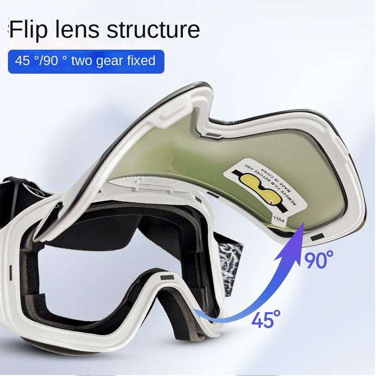 Custom Unisex Dustproof Windproof UV400 Snowboard Glasses.Your Premier Wholesale Solution For All-Weather Mountain Sports. Haec Unisex Snowboard Vitra Miscere Provectus Dustproof et Windproof Praesidium cum UV400 Technologiae. Featuring Mirrored Polarized Lentes Et A Revolutionary Flip Magnetica Systema, Singularis Visual Claritas Libera Pro skiing et Snowboarding.