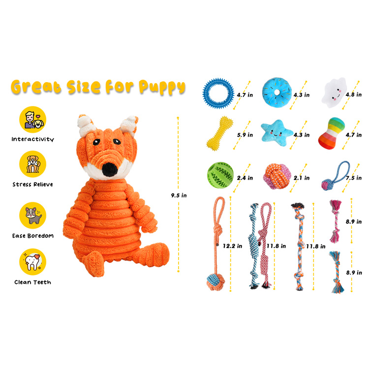 · [ Quality Plush & Cute Squeaky Toys ] Ludibria gausapati e fabricae qualitatis altae factae sunt et in stratorio constructa attentionem catuli trahet. Adde quod vulpis membrum cum cringa charta additur, venustius erit et iocus.