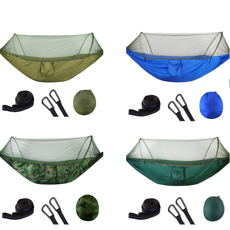 Nylon Cloth Camping Hammock Fully Automatic Quick Open.Your Ultimate All-Season Hammock Solution For Outdoor Adventures. Hoc Nylon Cloth Castra Hammock Features Plene Automatic Velox-Open Technologia Cum Integrated Protective Netting. Versatile satis pro uno aut duplici negotio, perfectum est hiking, superstes disciplina, et peregrinationes expeditiones.