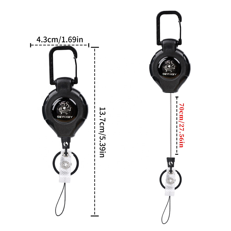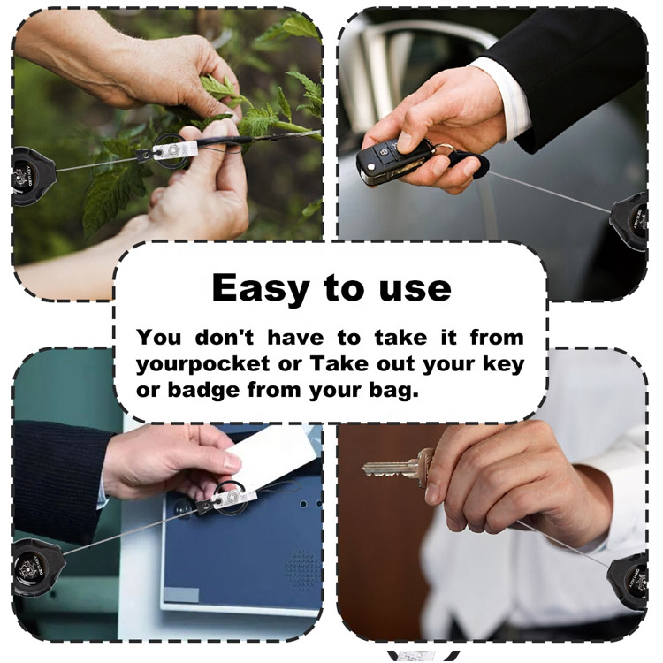 Features diuturnae 80cm nylon funis cum leni mechanismo retractabili, quod permittit extensionem commotoriam dum tangles praeveniens, claves tuas securas et pervias in actionibus velit custodiens.