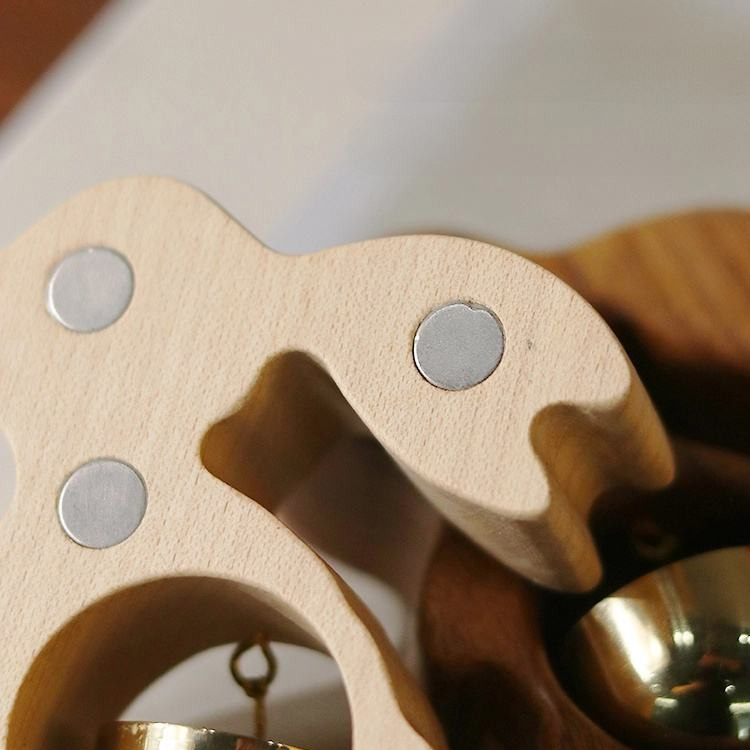 Haec fridge magnetis notat artificiosa ligno solido cuniculi consilio paribus cum tintinabulum aereo pulchre conflatum. Coniunctio materiarum naturalium et singularum artificiatorum non solum munus facit, sed etiam partem decoris delectabilem.