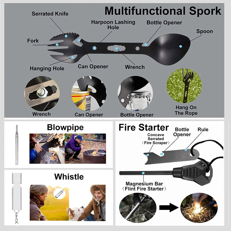 Wholesale Survival Gear Kit for Camping Hiking Fishing Hunting.Your Ultimate All-In-One Survival Solution For Outdoor Adventures. Hoc Comprehensive Apparatus Ornamentum Includes An Emergency Effugere Axe, significans sibilus, et certa ignis Coepi. Designed For Camping, Hiking, Fishing, and Vening, Is maximam praeparationem in rebus criticis efficit.